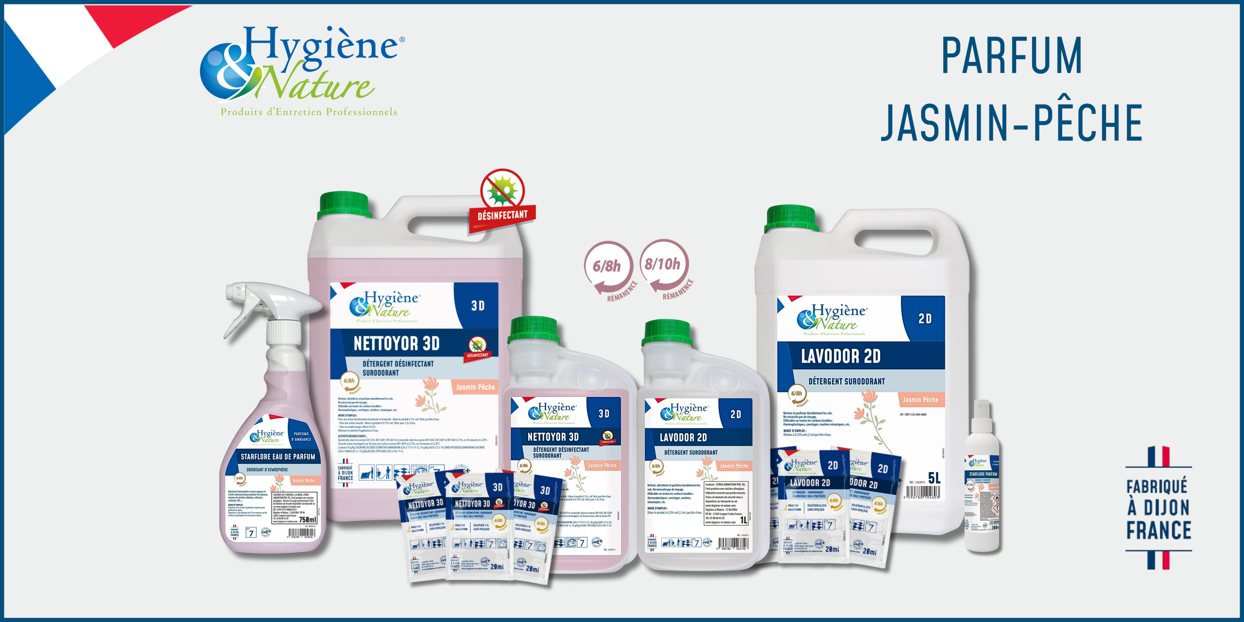 Hygiène et Nature a lancé le parfum Jasmin Pêche qui est rapidement devenu l’un de nos best-sellers.