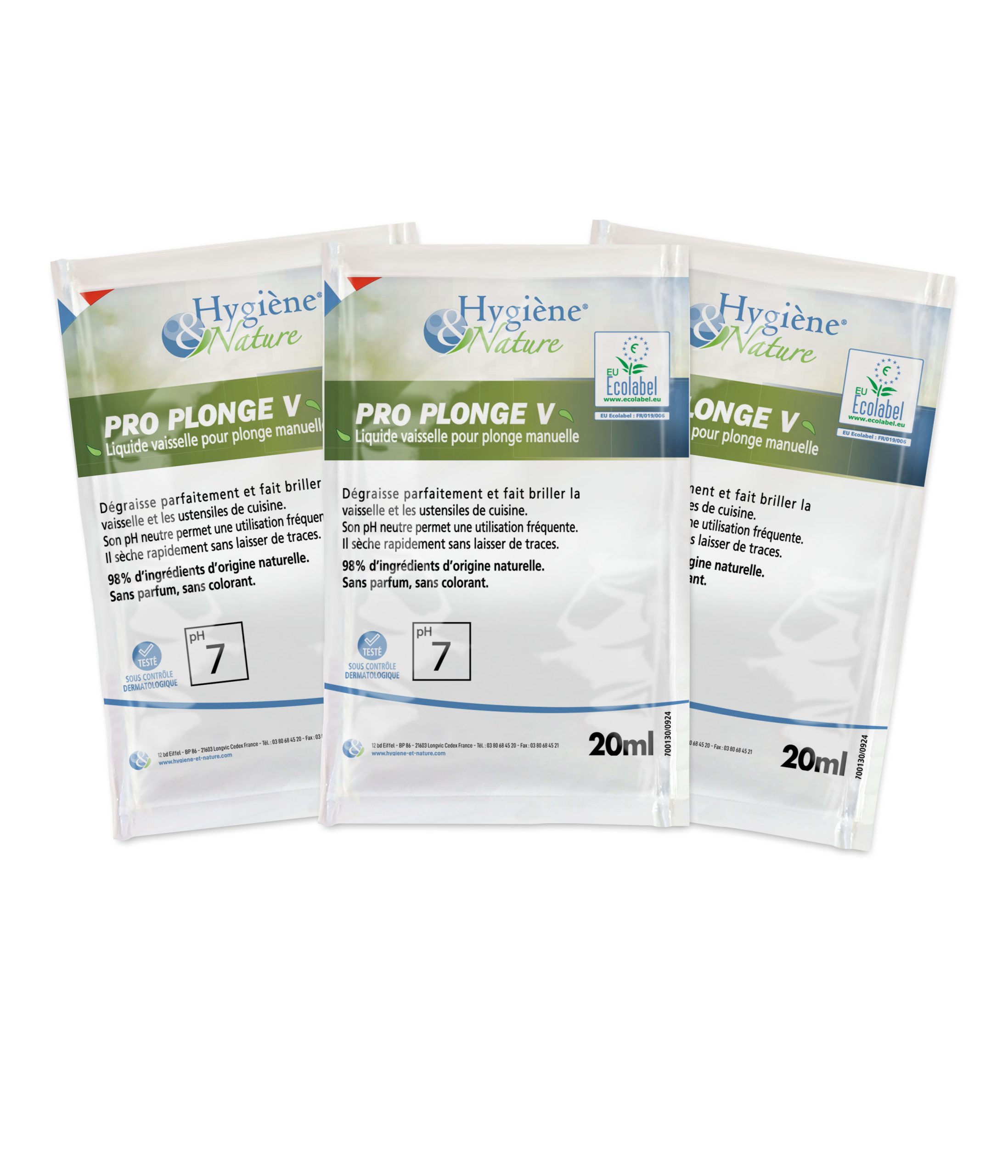 Liquide vaisselle pour plonge manuelle certifié selon l’ECOLABEL Européen, Pro Plonge V dégraisse parfaitement et fait briller la vaisselle, la verrerie et les ustensiles de cuisine. Il sèche rapidement, sans laisser de traces.