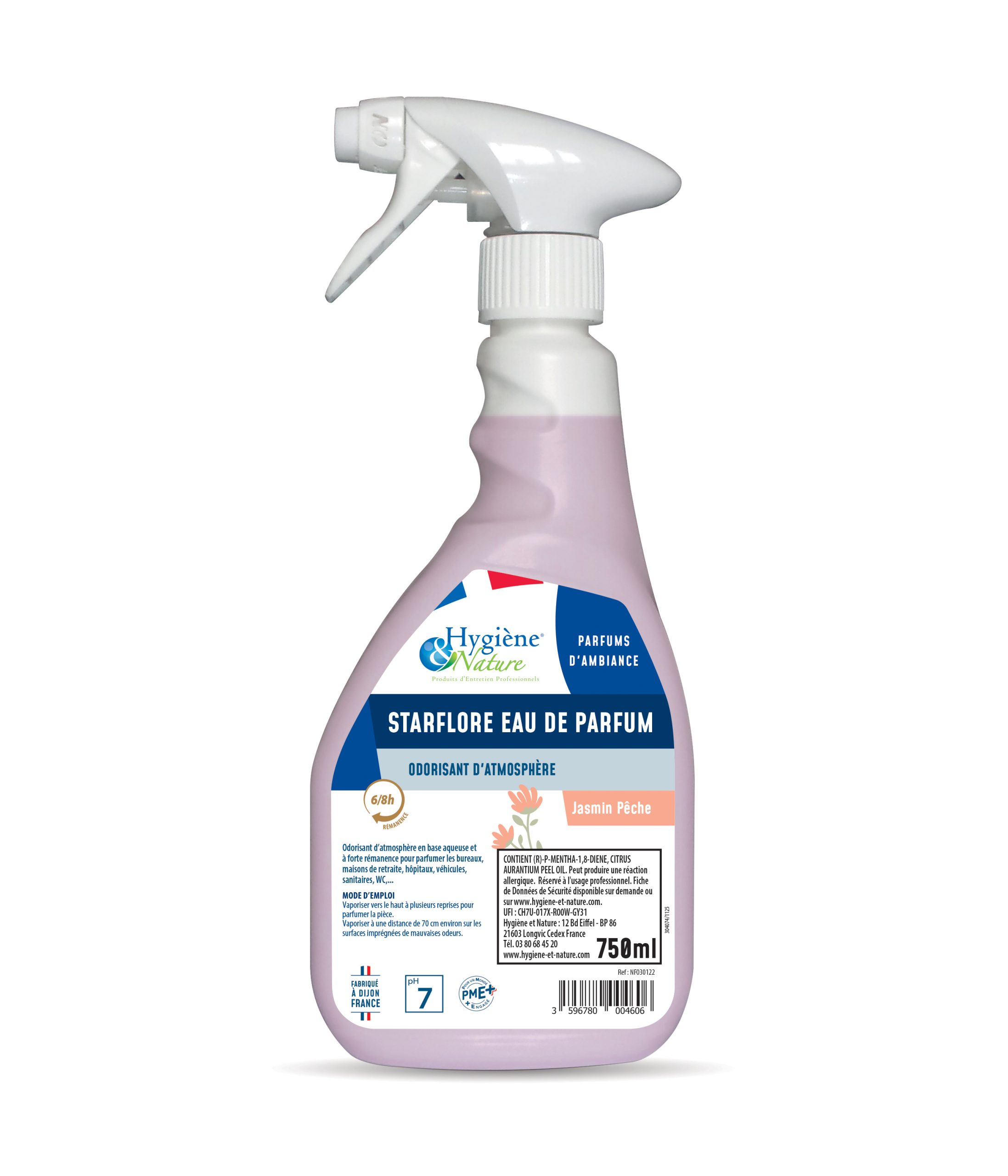 Odorisant d’atmosphère en base aqueuse à haute rémanence (6 à 8 heures). Il parfume agréablement les bureaux, maisons de retraite, hôpitaux, véhicules, sanitaires, WC…